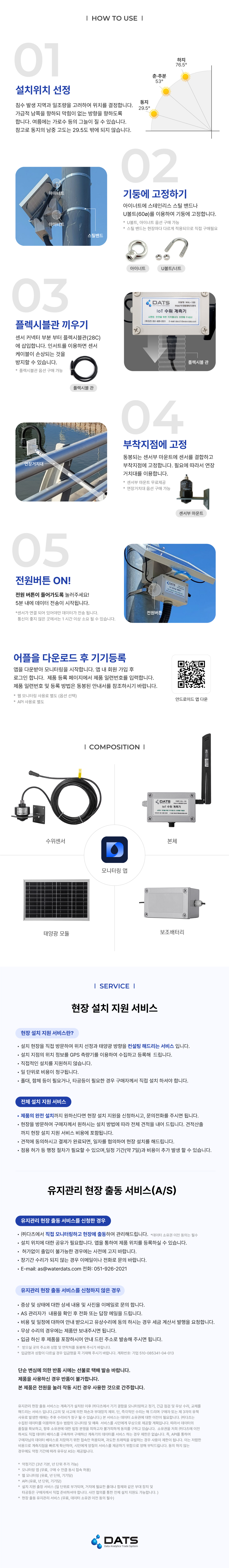 하천, 저수지, 댐 등의 수위를 실시간으로 모니터링하는 고정밀 IoT 센서입니다.
